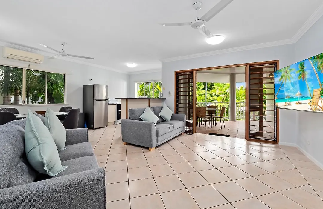 Das Oliva St 2 Bedroom Palm Cove Apartment bietet einen Balkon, eine Sitzecke und eine Küche mit einer Klimaanlage für höchsten Komfort. Genießen Sie den Komfort eines Badezimmers im Apartment, das mit einem Haartrockner, einem Wäschetrockner und Handtüchern ausgestattet ist. Außerdem gibt es hier eine getrennte Toilette, eine Dusche und eine Waschmaschine.